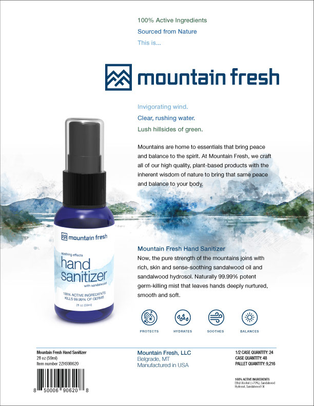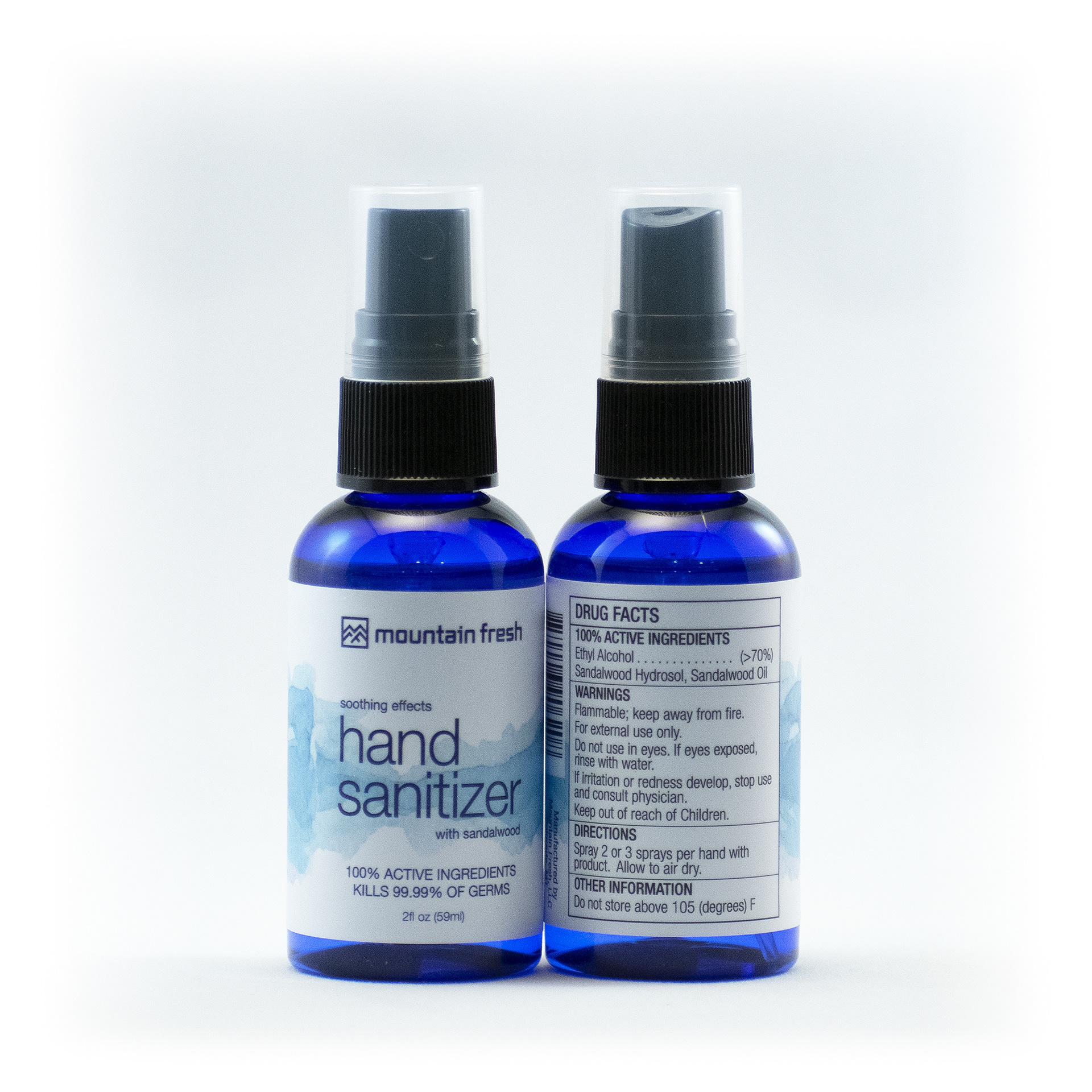 Mountain Fresh is a Montana based company that combines sandalwood oil and hyrdosol with ethyl alcohol to create a unique hand sanitizer that is 99.9% potent and gentle on your skin.